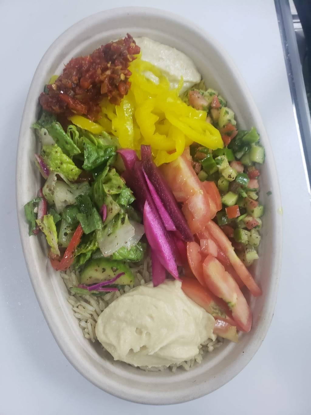Newly opened up spot that has amazing mediterranean food! Everything was fresh and made to order. Have had it one time and can't wait to go back and try other things on the menu!