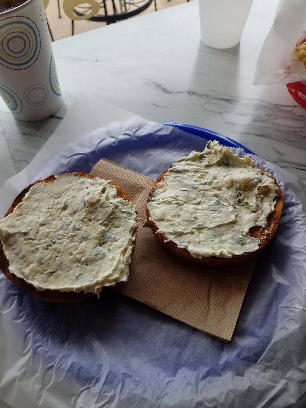 Great bagels and great coffee. Best if you know what you want before getting in line because it's always packed and the staff is pretty busy. They have a $5 minimum for cards also. I always like to get cheese and herb bagel with veggie lite cream cheese, but their sandwiches are also great.