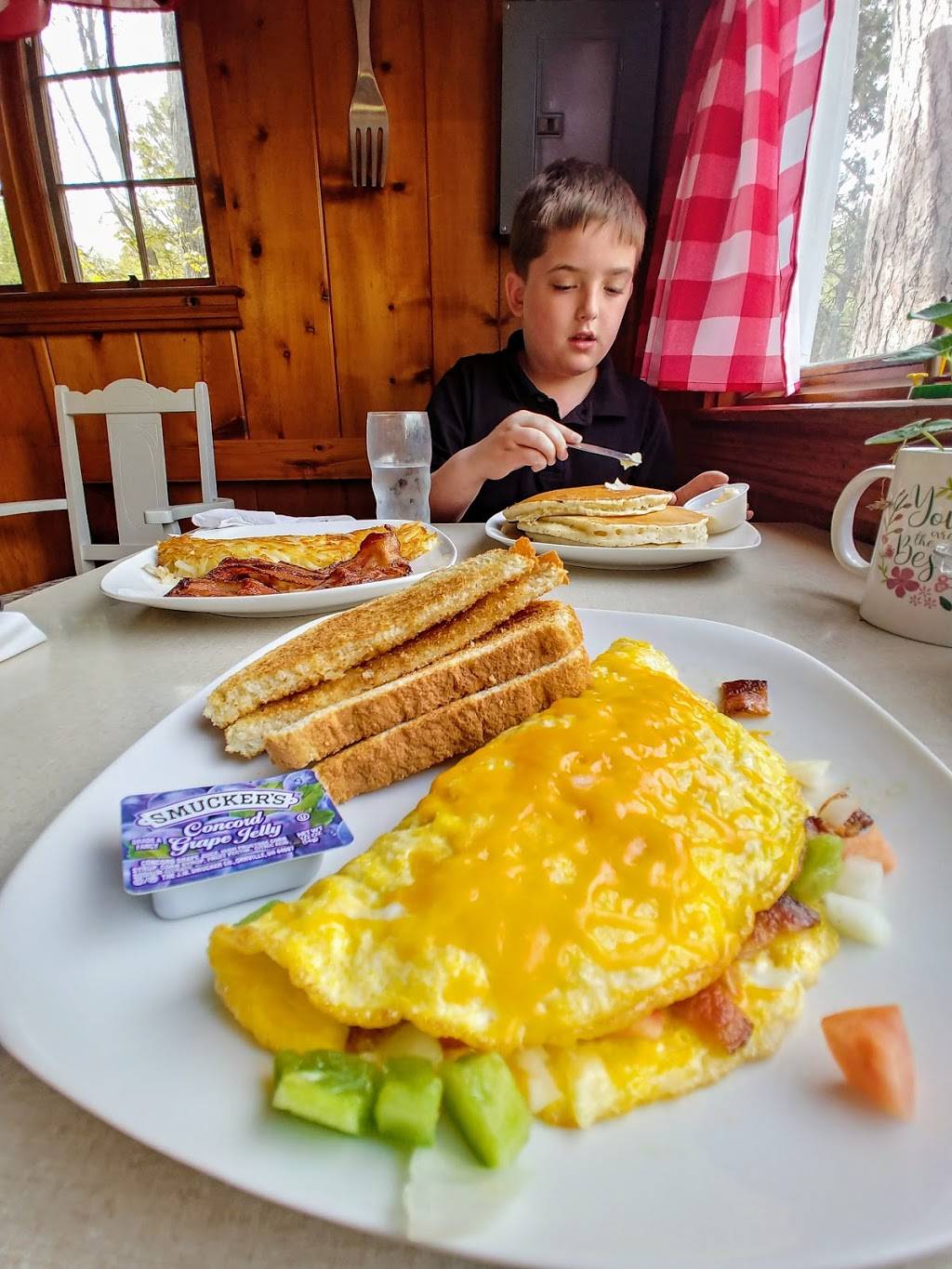 Maybe it was an off day, but we tried some food from here and we weren't impressed. Eggs were very oily. Sausage patty was dried out/gross. My side of oatmeal was the only thing i really enjoyed. Staff was friendly. Small, cute building. No silverware or napkins provided with carry out. We might give it another try again eventually just because it is so close by to the cabin. Hopefully the lunch/dinners are better. The pies look great.