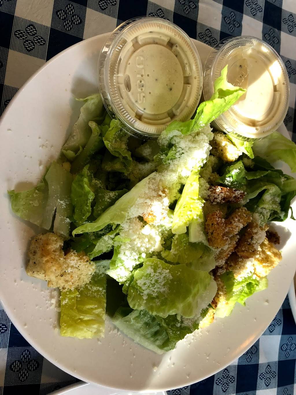 Well lit and decorated. Friendly wait staff. Cheesy bread and antipasto salad were great. There was enough salad to share with four adults. Ordered large Blue Water Bridge Pizza. As soon as it arrived we all said "wow!" at once. It was so big, we had to take half home. Very generous with cheese and toppings. Excellent quality of ham as well as the other ingredients. Will have to order medium next time.