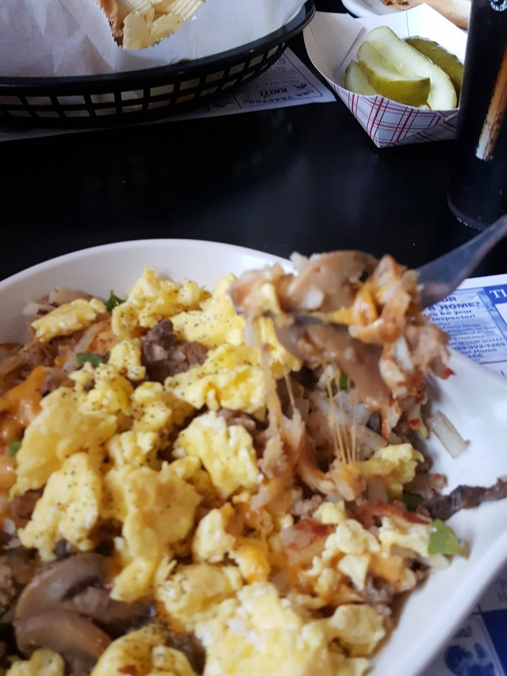 Menu changed, not quite as good as six months ago. Extremely skimpy on the chips. Glass of milk was great!! Lunch rush hour was only four tables, six patrons. Waitress was nice. Sad.