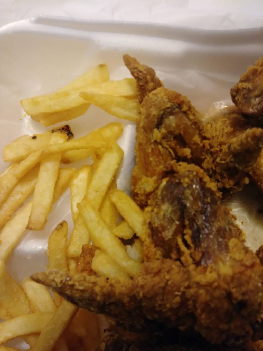 Overly fried chicken! No juice left inside...HARD!! Just tasted like a whole bunch of fried food. No separation in taste! Ordered catfish, wings, shrimp & fries. The chef was over worked & couldn't focus on cooking! He had to take orders, answer phones, bag the food & cash out customers which probably affected the quality of food! Good luck