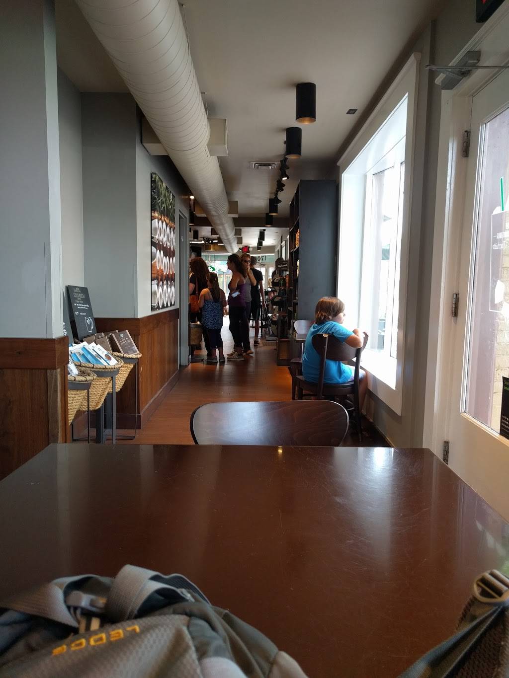 It's Starbucks!? cozy seats upfront looking outside- back room seating could use an update