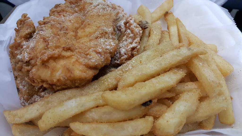 Hot fresh 2 pieces of Catfish, 5 Shrimp, fries are well worth the wait! Combo # 12!
