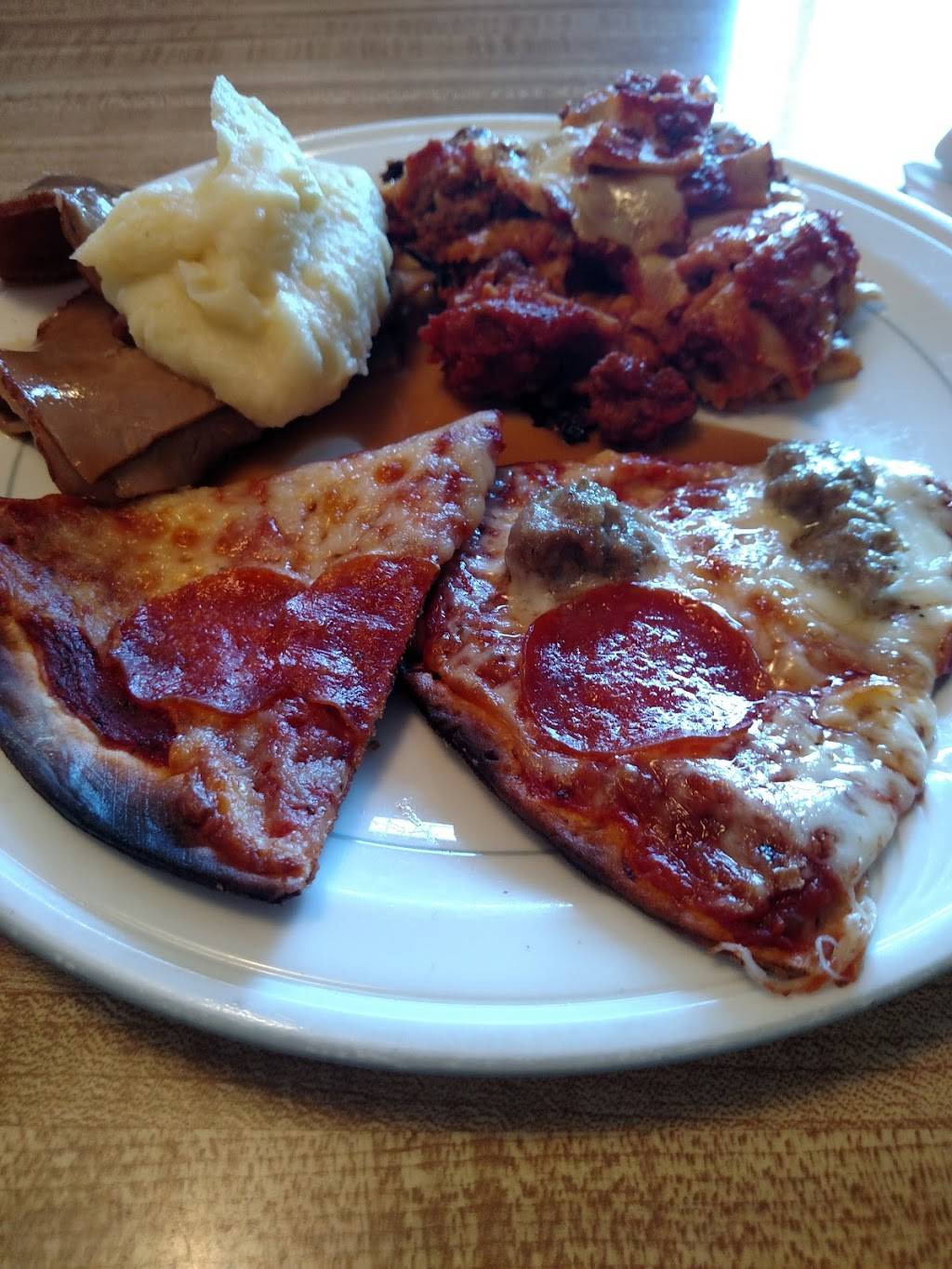 Great small locally owned pizza place. Wish the lunch buffet was a little bigger. Very good pizza. Good variety on the menu. Plenty of parking. Friendly staff.