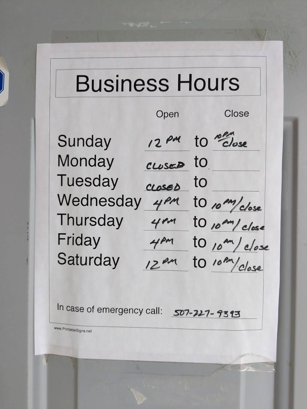 | Friday: | Closed |