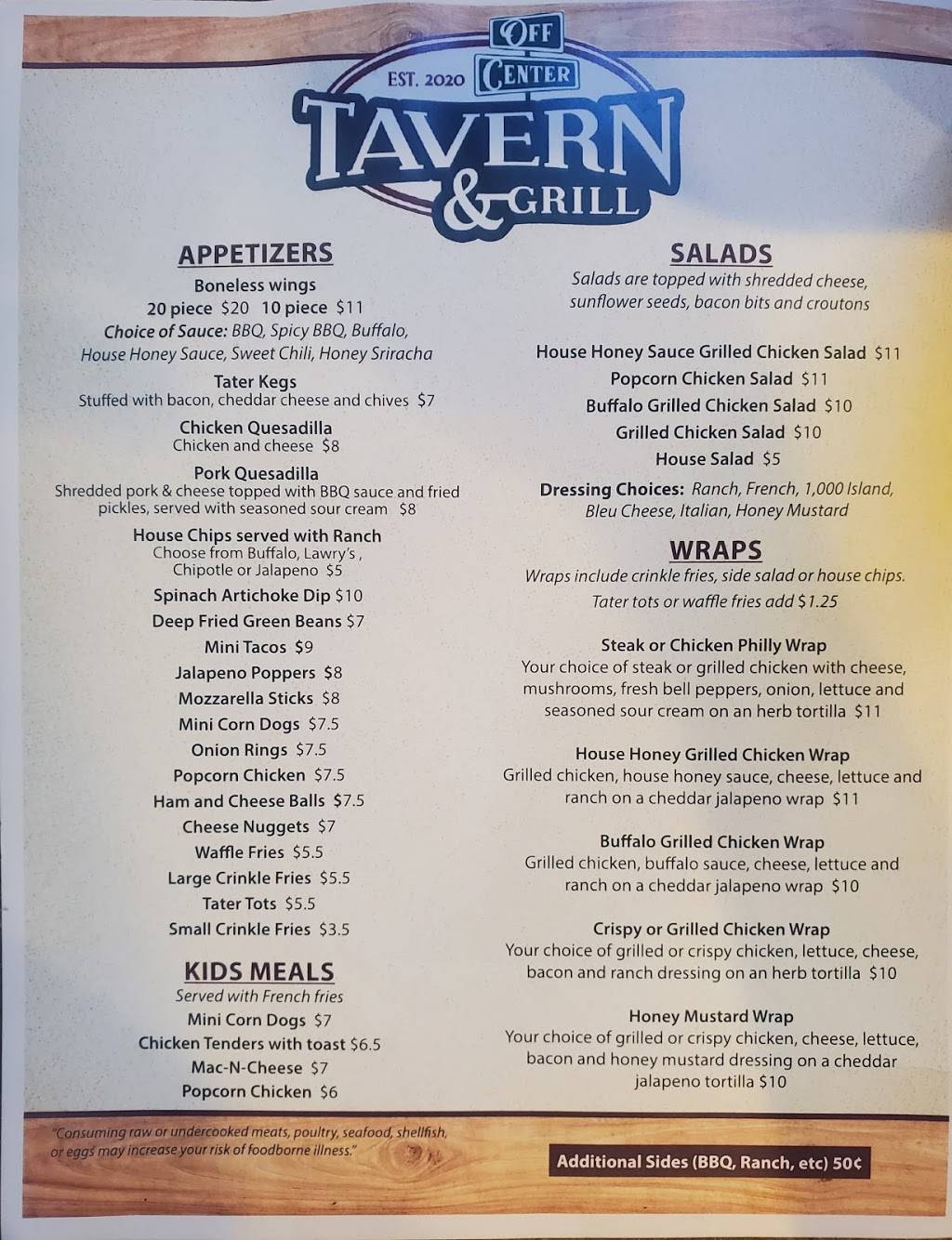 You can review this Business and help others by leaving a comment. If you want to share your thoughts about Off Center Tavern & Grill, use the form below and your opinion, advice or comment will appear in this space.