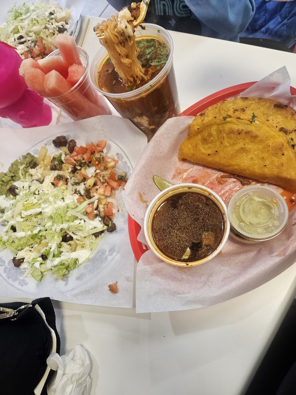 Delicious! Absolutely 😋yum! I ordered the soup and birria tacos and asada fries. The fresh, and I mean they pressed them right after I ordered, tortillas were bomb! So good, I'm from so cal and I highly recommend this place if you want some authentic food. I wish they would put numbers on the menu just to make it a little easier to order though because communicating was a little difficult but by no fault of theirs. My Spanish is just lacking.