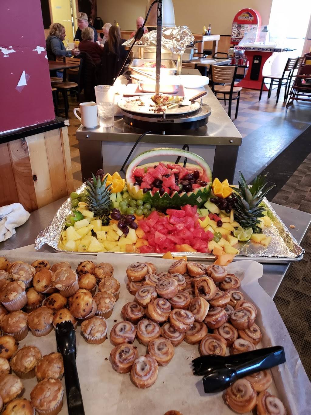 Good pizza. Waitress was nice and helpful. Lots of kids running around.