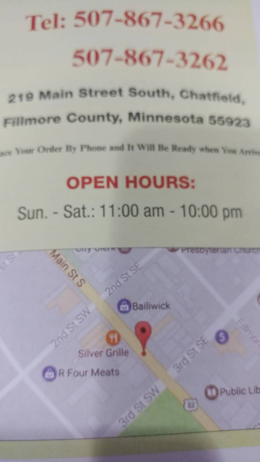 | Address: | 219 Main St S, Chatfield, MN 55923, USA |