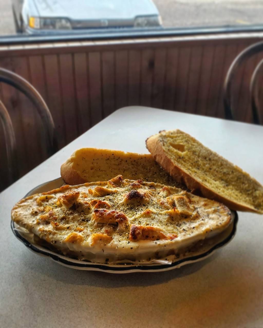 Alfredo, bomb. With the garlic bread, amazing. Full of flavor. Made me smile.