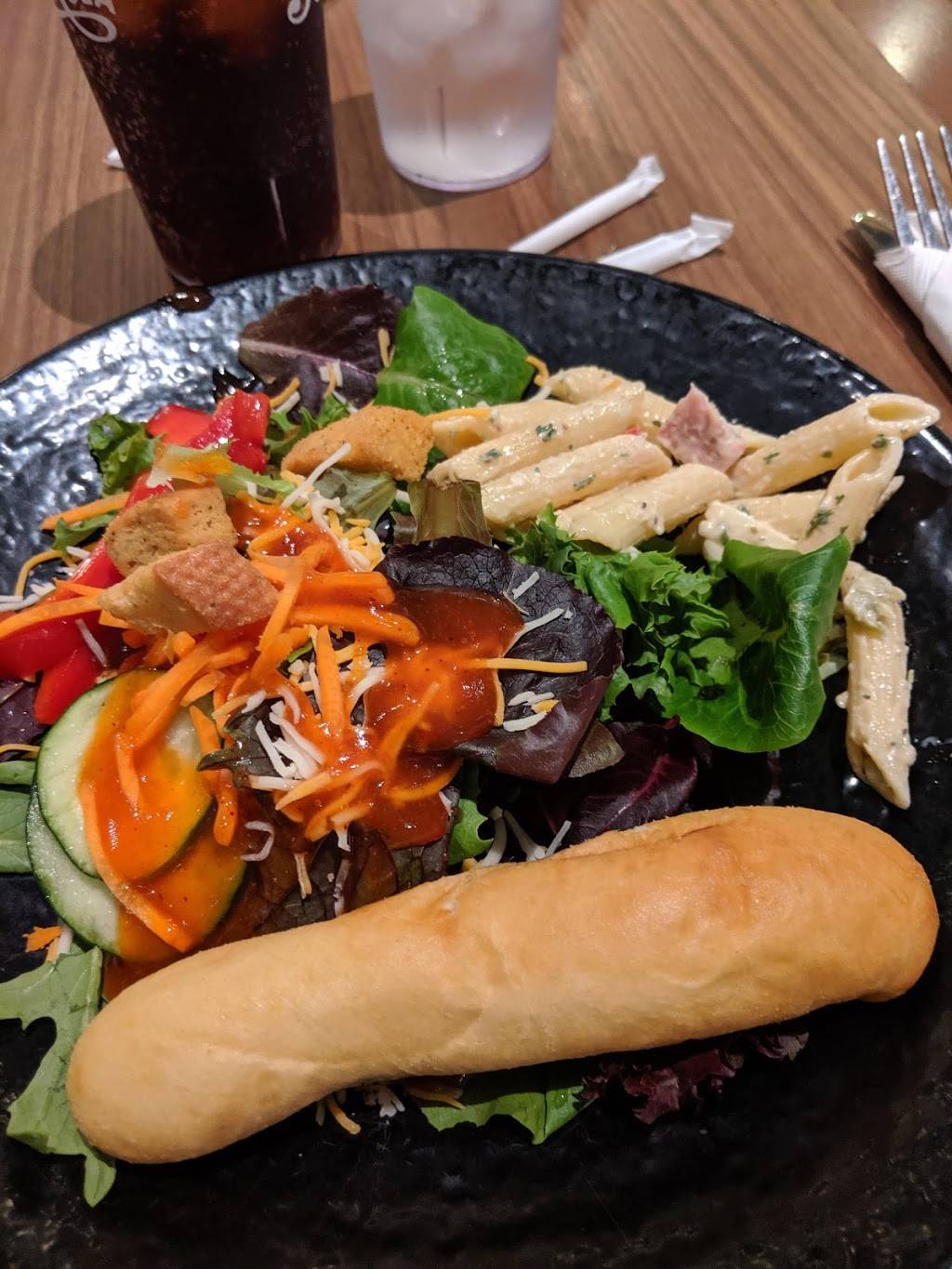 Loved the food here! Delicious salad bar with much to choose from. French dressing was amazing and bread sticks made me want 2nds! Different stations with different foods Asian, Italian ,Mexican, American. The fried chicken was crispy and hot. Staff friendly and refilled drinks at appropriate times. Nice selection of deserts such as pies(including sugar free) and ice cream. My only complaint is that the Asian looked like it was sitting there awhile and I would replenish that more often. Old fried rice not my cup of tea. Overall great atmosphere and would definitely return a visit :)