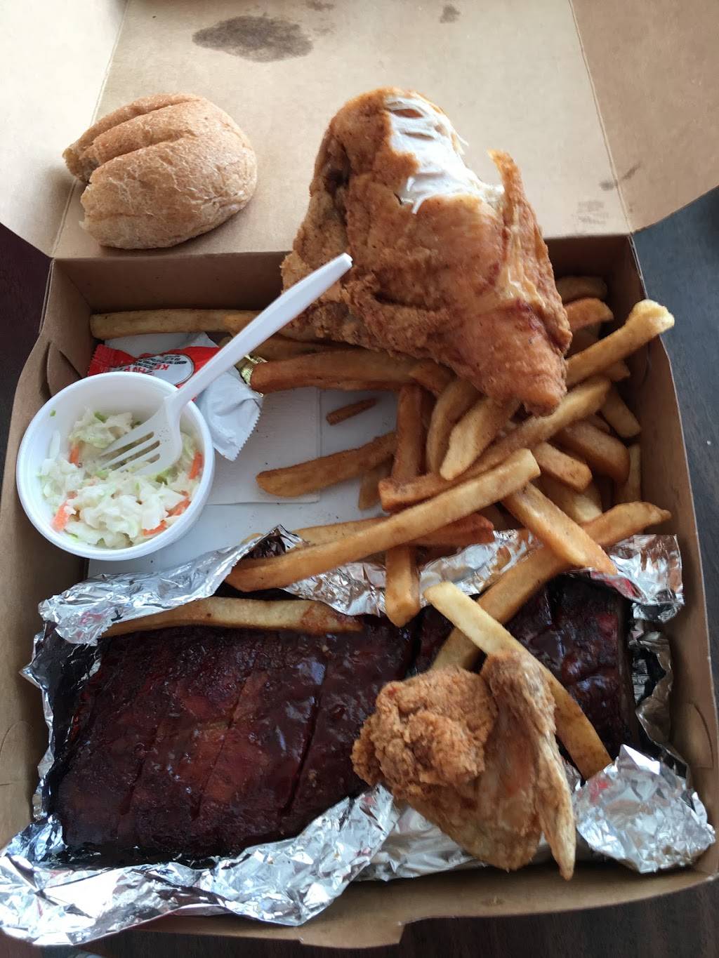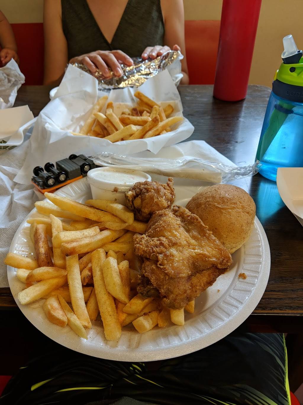 The fried chicken was excellent. As was the slaw and the fries and the roll.
