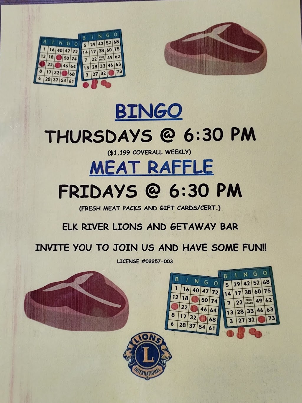 Had our Christmas Dinner for Elk River Lions here this evening. Had hot beef or hot turkey dinners with salad and dessert. Very comfortable atmosphere , great service and affordable. The food was very good and we all had full bellies when we left. Great portions.