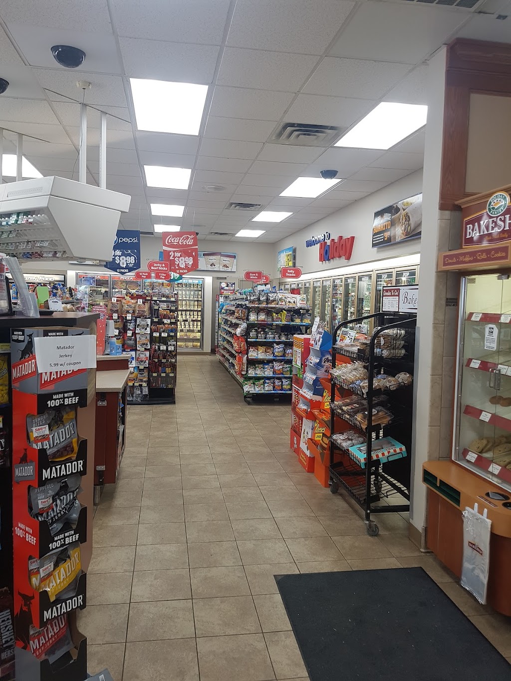 One Holiday is pretty much like the others. They could use some updating. The stores seem a bit dated. The prices on convenience items are really jacked up compared with the local grocery stores. The gas prices are competitive. They do offer a selection of coffees, hot food items, and the like. The cashiers have generally been friendly. This Holiday is located at a busy intersection.