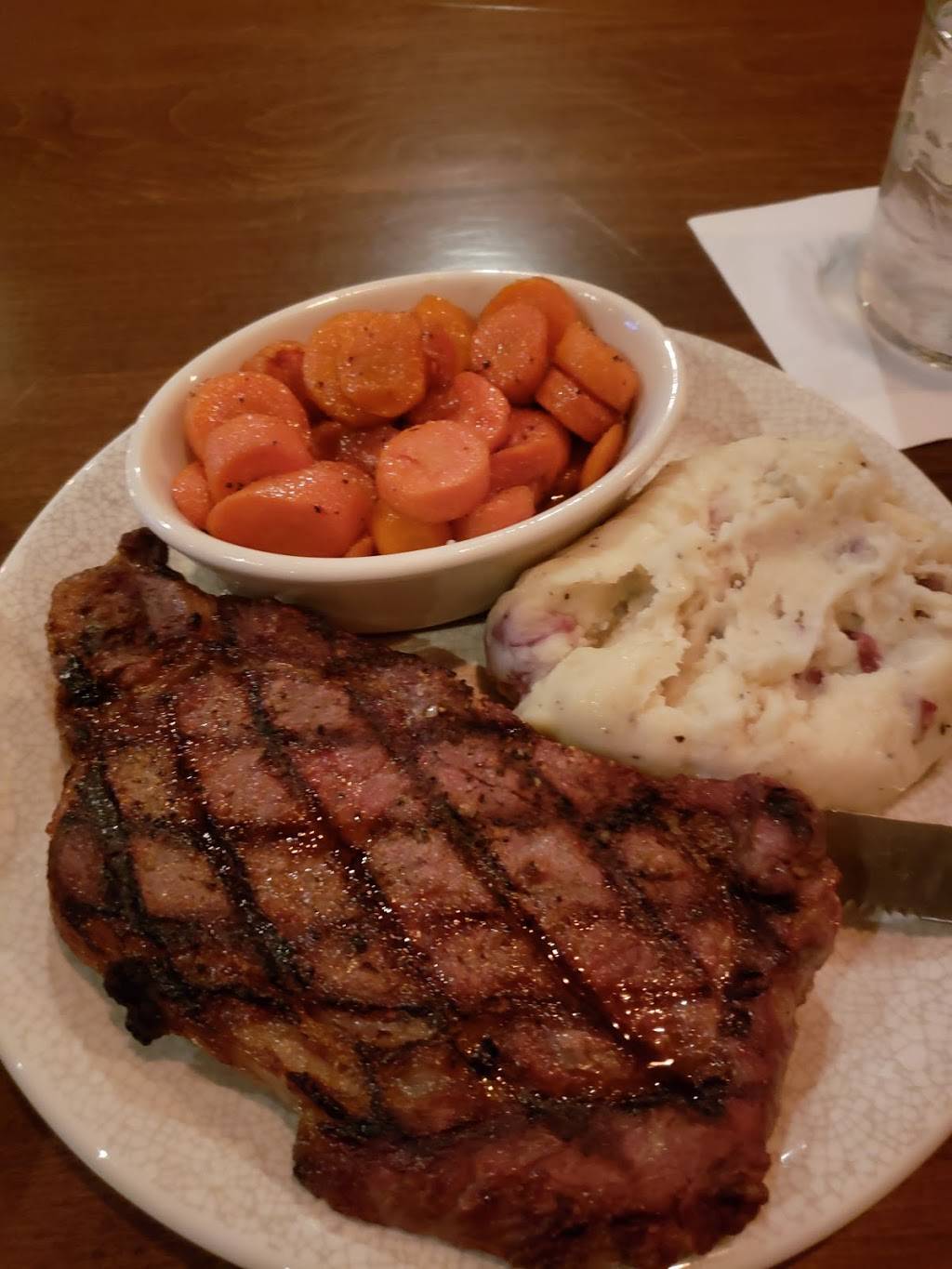 AMAZING food and service. My husband had the fillet mignon with melted blue cheese, glazed carrots & string beans that was to die for. I had the bourbon pork chop, roasted potatoes & broccoli. I closed my eyes with every bite I took!!! Service was perfect & genuine. Can't wait to go back.