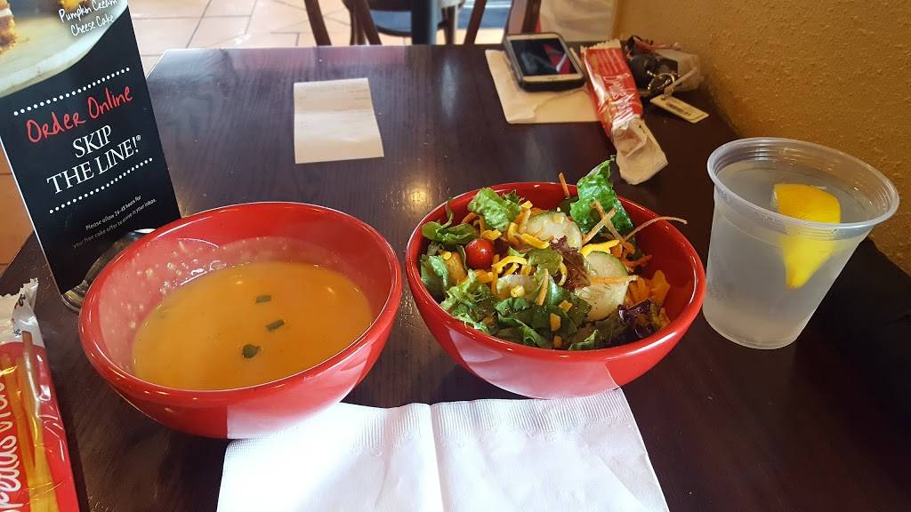Salads, artisan pizzas, many daily varieties of soups, sandwiches, desserts, and huge refillable glasses of Iced Sweet and Unsweet Tea. Great food, great service, great visit every time, and to go too!