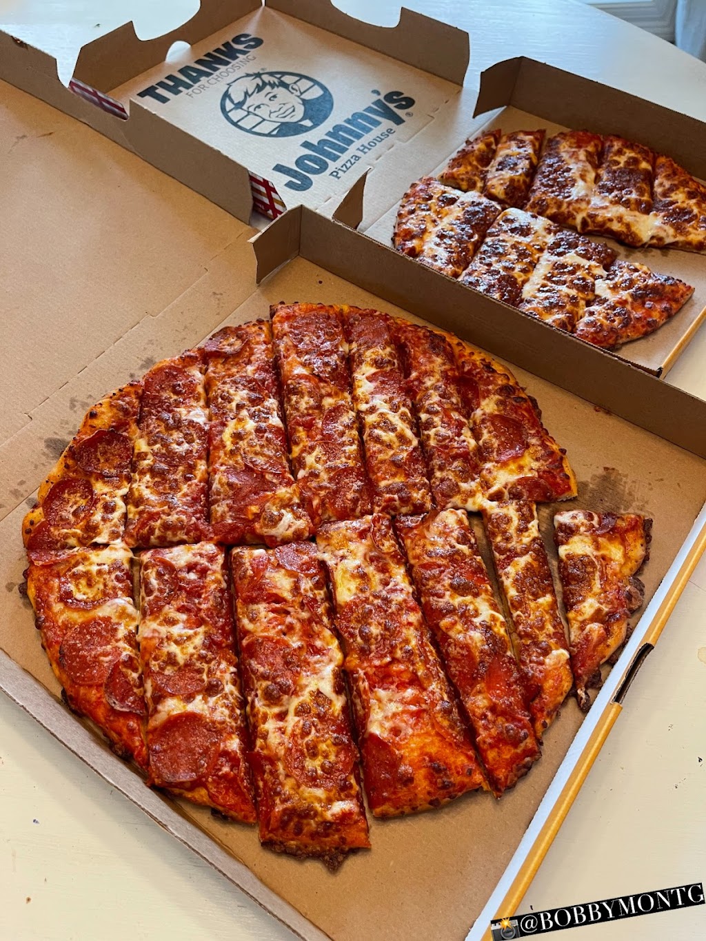 Pizza is absolutely amazing! Fast service and super friendly little darling young ladies working, who are always smiling and working hard. These girls know how to deep clean under those booths! Have witnessed them dealing with difficult customers with grace. Glad to have Johnnys in the community!