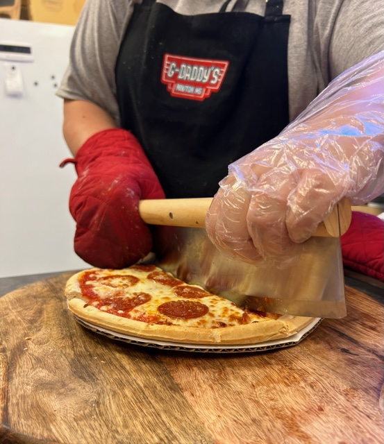 I had the good fortune of stopping in at G-Daddy’s today on my way back to Texas and let me tell you, the make a great pizza! I went with the meaty monster. I highly recommend stopping in or placing an order with G-Daddy’s anytime you’re in the area and are itching for a great slice pizza.