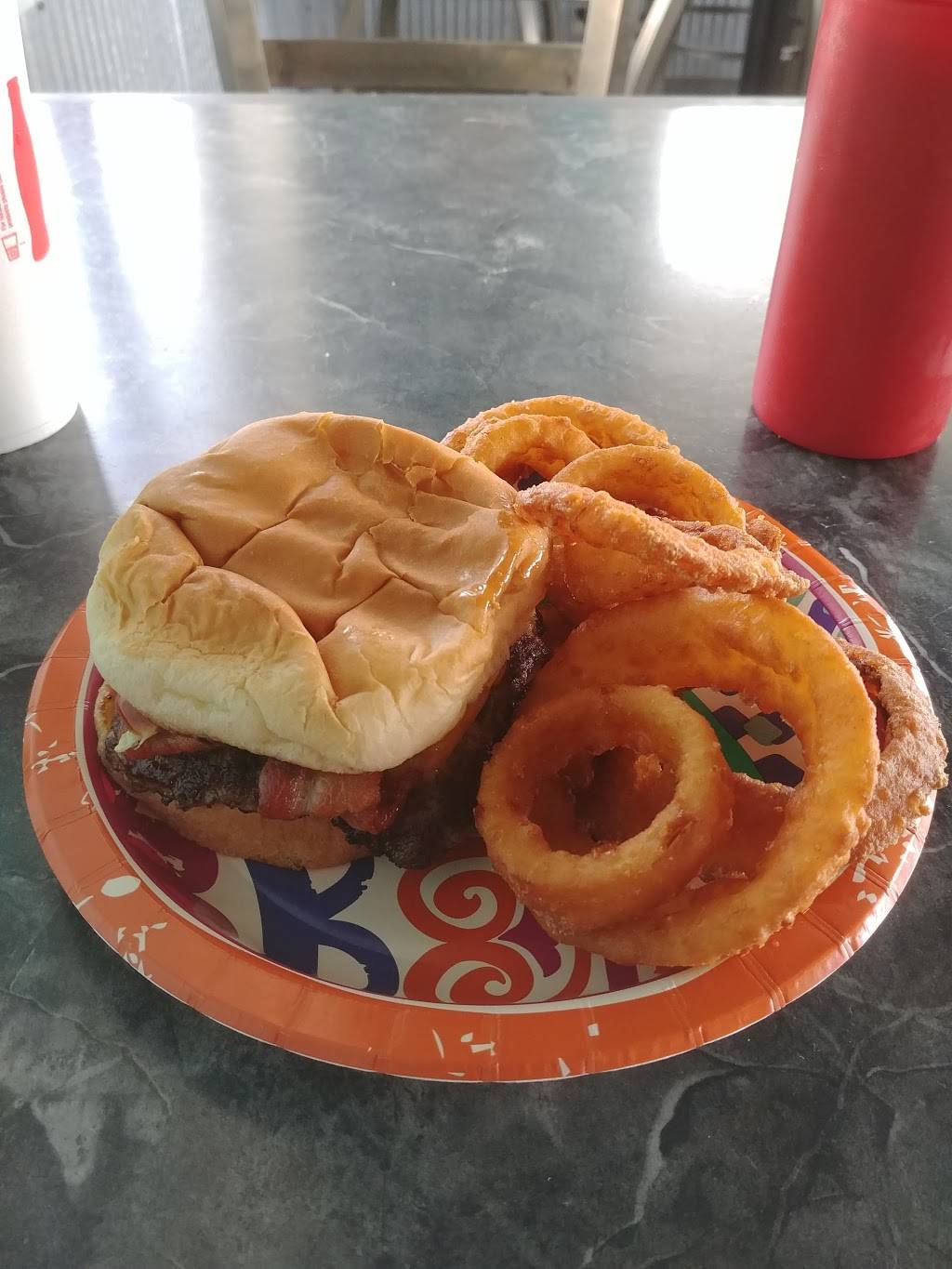 We stopped with our family of 6 on the way home from Destin. It's a small town restaurant with great burgers that came out quick. The restroom was small and clean. The staff was friendly and attentive. A few people came in for to-go orders as well.