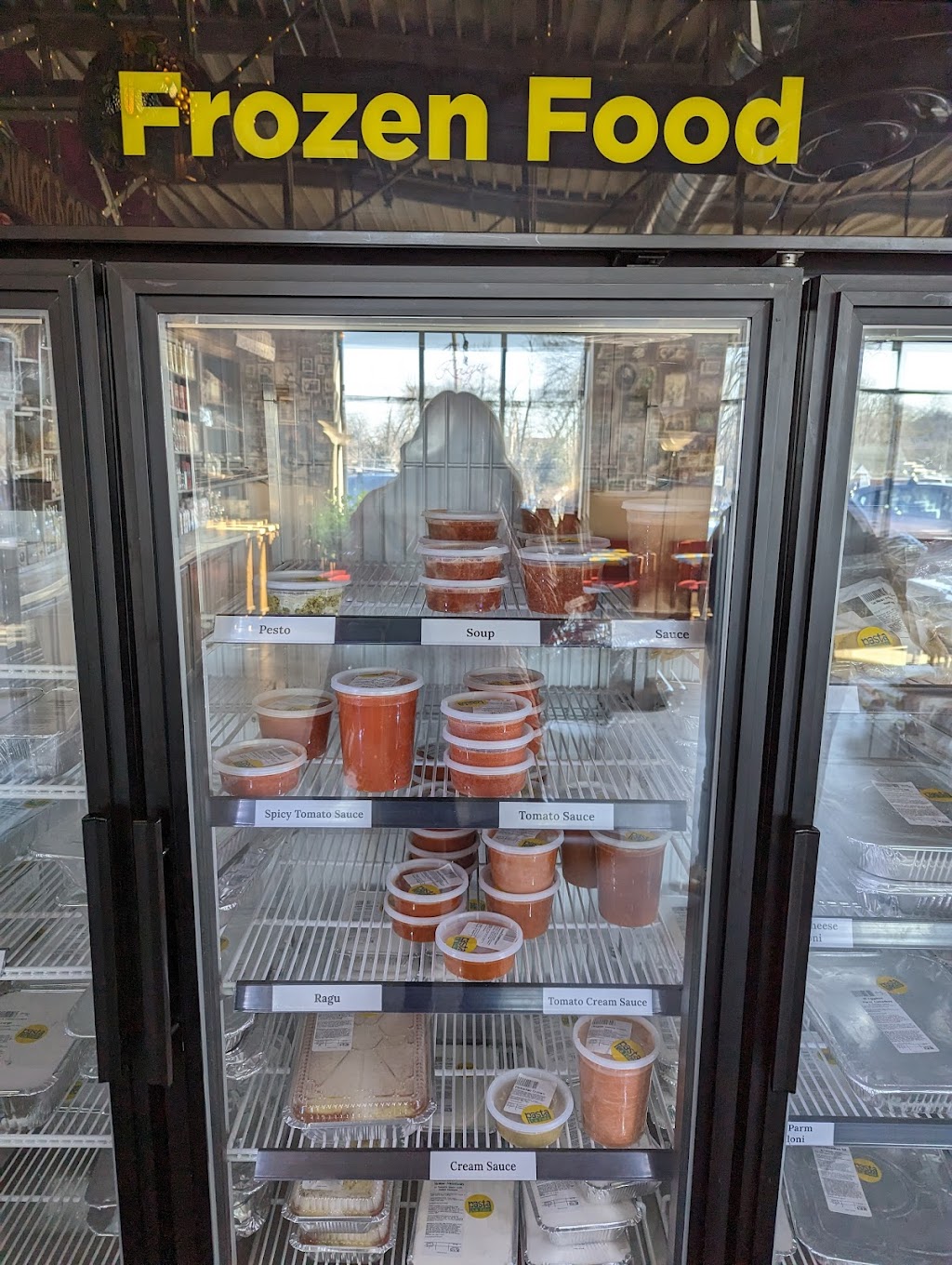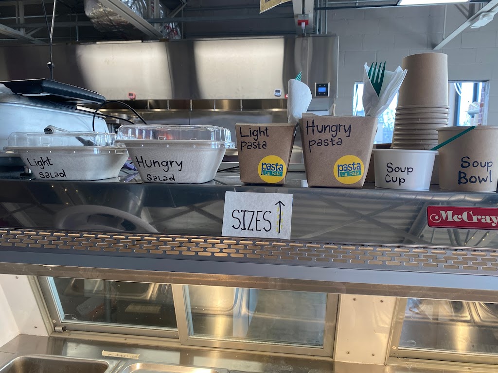Love this place! It’s very very casual — order at the counter, pick up your own utensils — but the food is very high quality. The pasta containers look small, but my husband and I couldn’t eat all the pasta in our large container (we got salads too). The pistachio/raspberry cake is to die for. We got some biscotti for later — also delicious.