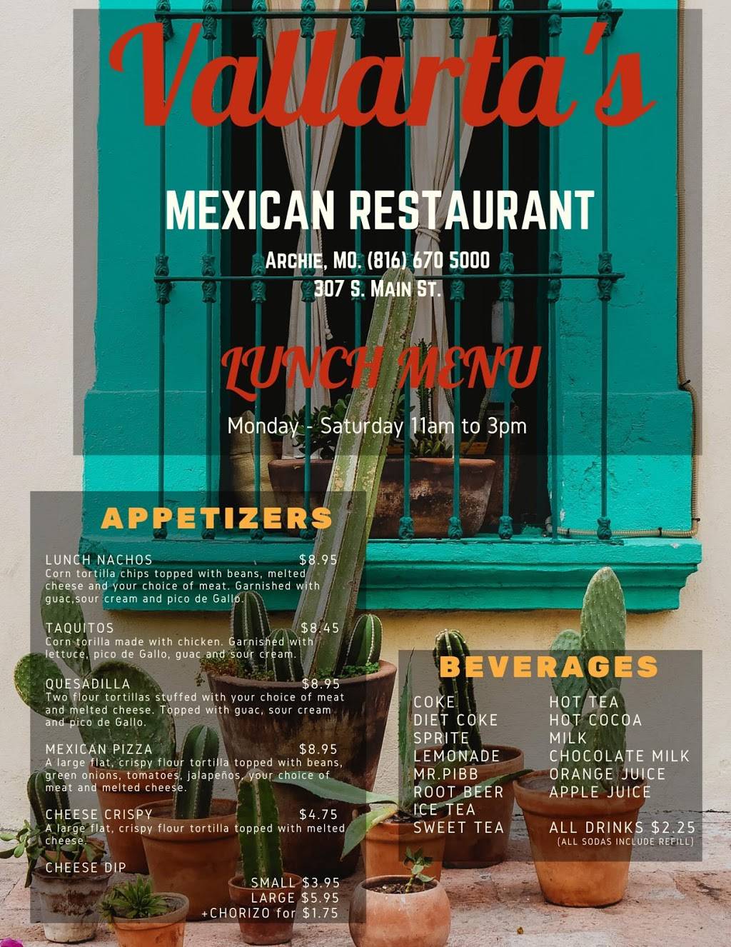 This as a great little family ran restaurant with absolutely amazing flavors. The seasoning and cook on the chicken and steak were delicious. Food was plentiful (very plentiful!) and priced right. Salsa was spot on and the queso was heavenly. Needless to say, we will be visiting as often as we can. Wife and I both highly recommend Vallarta's.