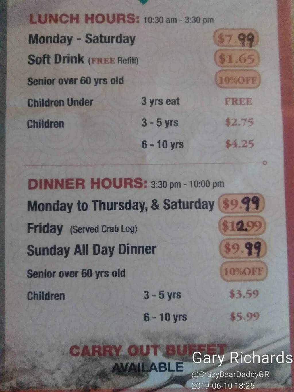 My absolute favorite Chinese buffet to go to. No other buffets have had the variety like this one does. The sushi is also really good quality considering it is on the buffet line.
