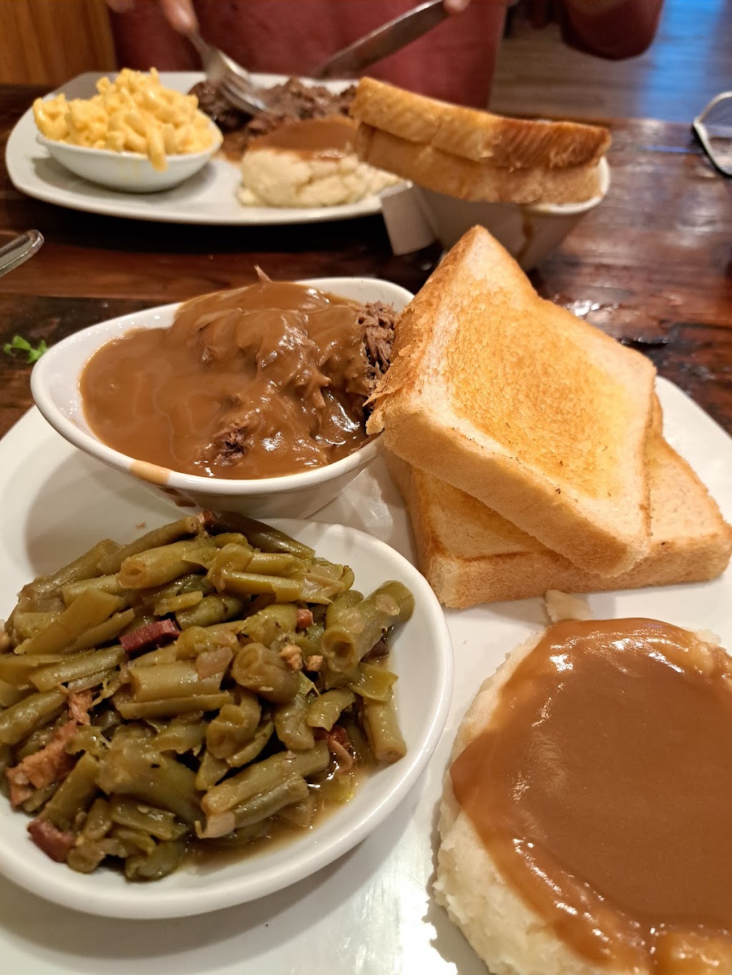 Great food and awesome service. It was busy, and had to wait on food, but worth the wait. Refills on our drinks, spot on. Great staff and attentive. Ordered Okra as appetizer. Stateline cheeseburger w/beets and CFS w/ green beans and mashed potatoes. DELICIOUS