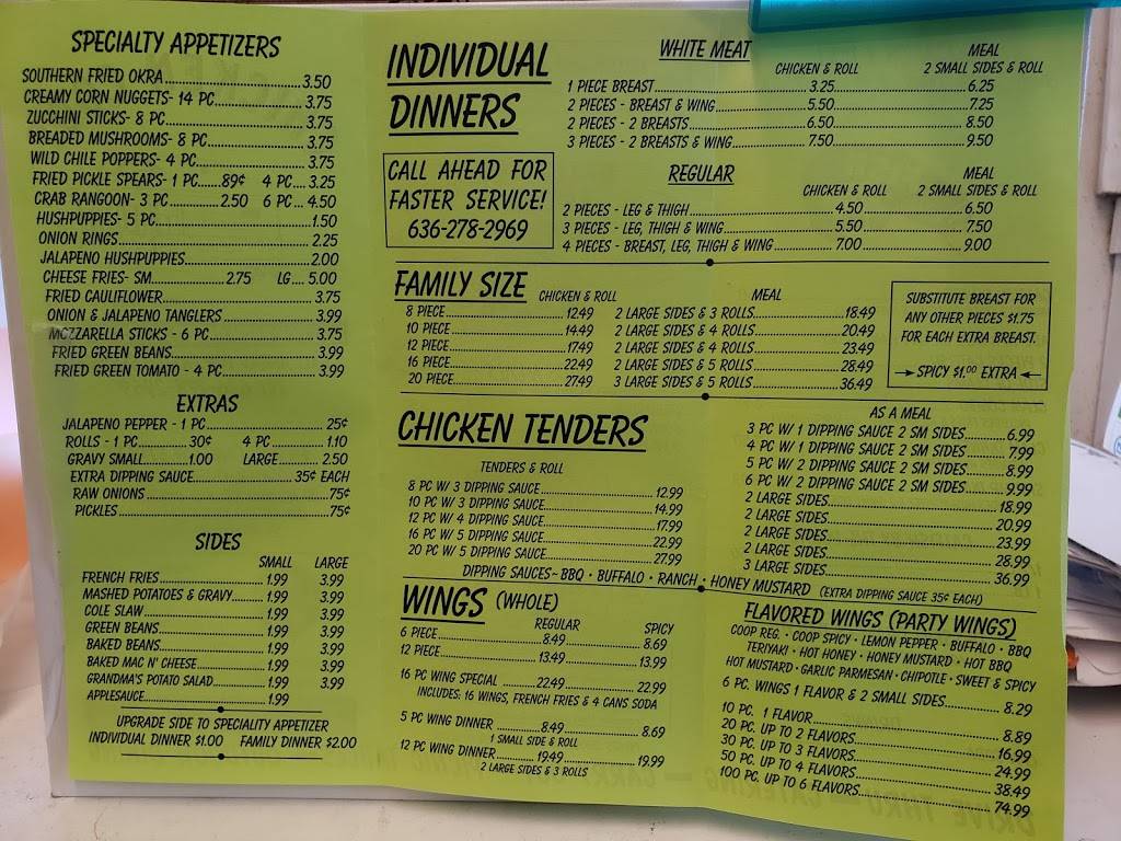 very good fried chicken, they cook each order when you order, so call the order in or just sit and wait... well worth it..