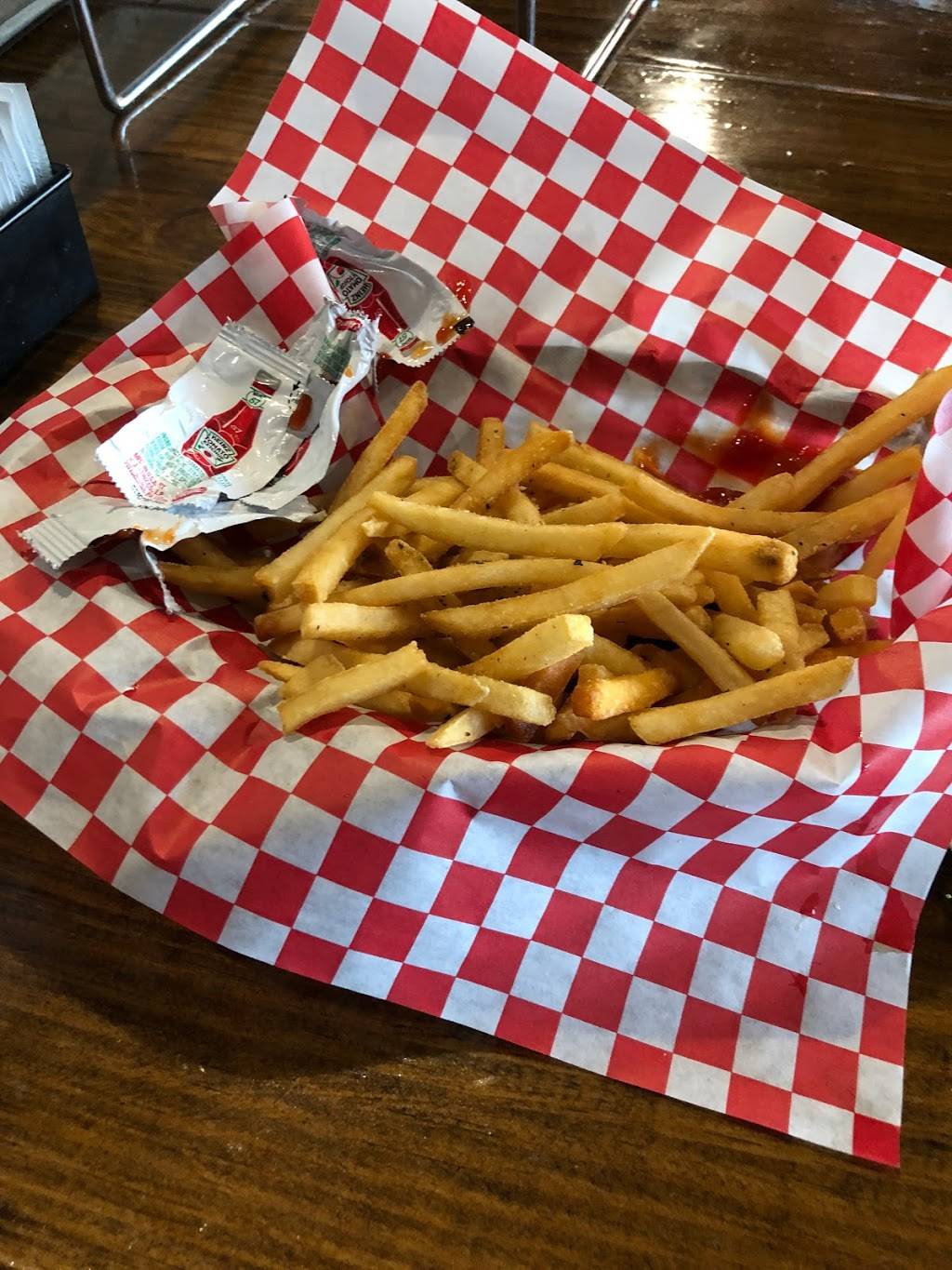 Great atmosphere. Feels like they are cheaping out on condiments though. I don’t like opening packets. Save that for McD’s and get some bottled ketchup at the tables. Plenty of help yourself to-go items like boxes and napkins etc. Wings were good and fries were seasoned.