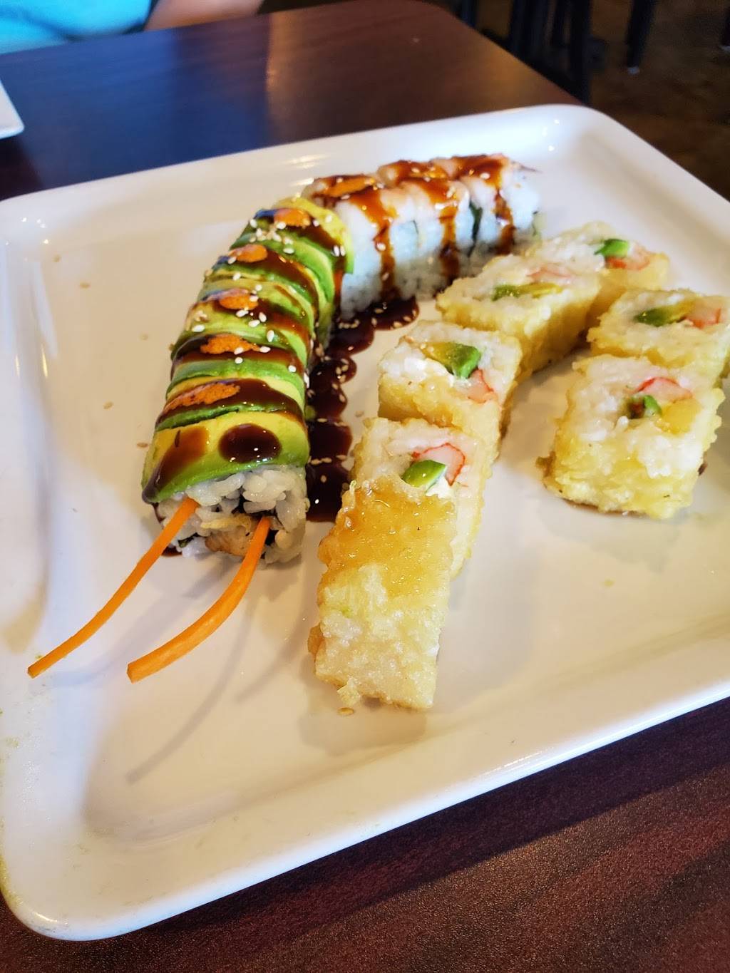 Good atmosphere and good service. Our lunch was terrific! Ordered Tom Yum noodle soup and spicy rice with chicken with a sumo sushi roll....can't wait to go back!!