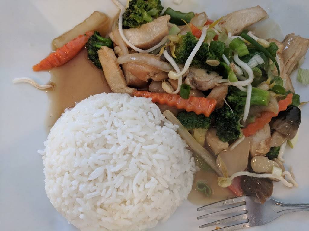 Great food, and reasonable prices, a small friendly place. Not fancy, but clean, good selection of Thai food. They don't use msg. Service was fast. They offer levels of spicy or hot from none, mild medium, hot, and very hot. Medium has a nice tang to it, no discomfort, but some zing. The noodles are good. The green curry is super. The spring rolls are the best I have ever had. The beer selection is limited, but adequate. The Thai tea was very good, and a better choice to compliment the food, anyway. Hard to see from the road, sign is small. It's in a small strip center, with a Potbelly's, look for that sign to guide you.