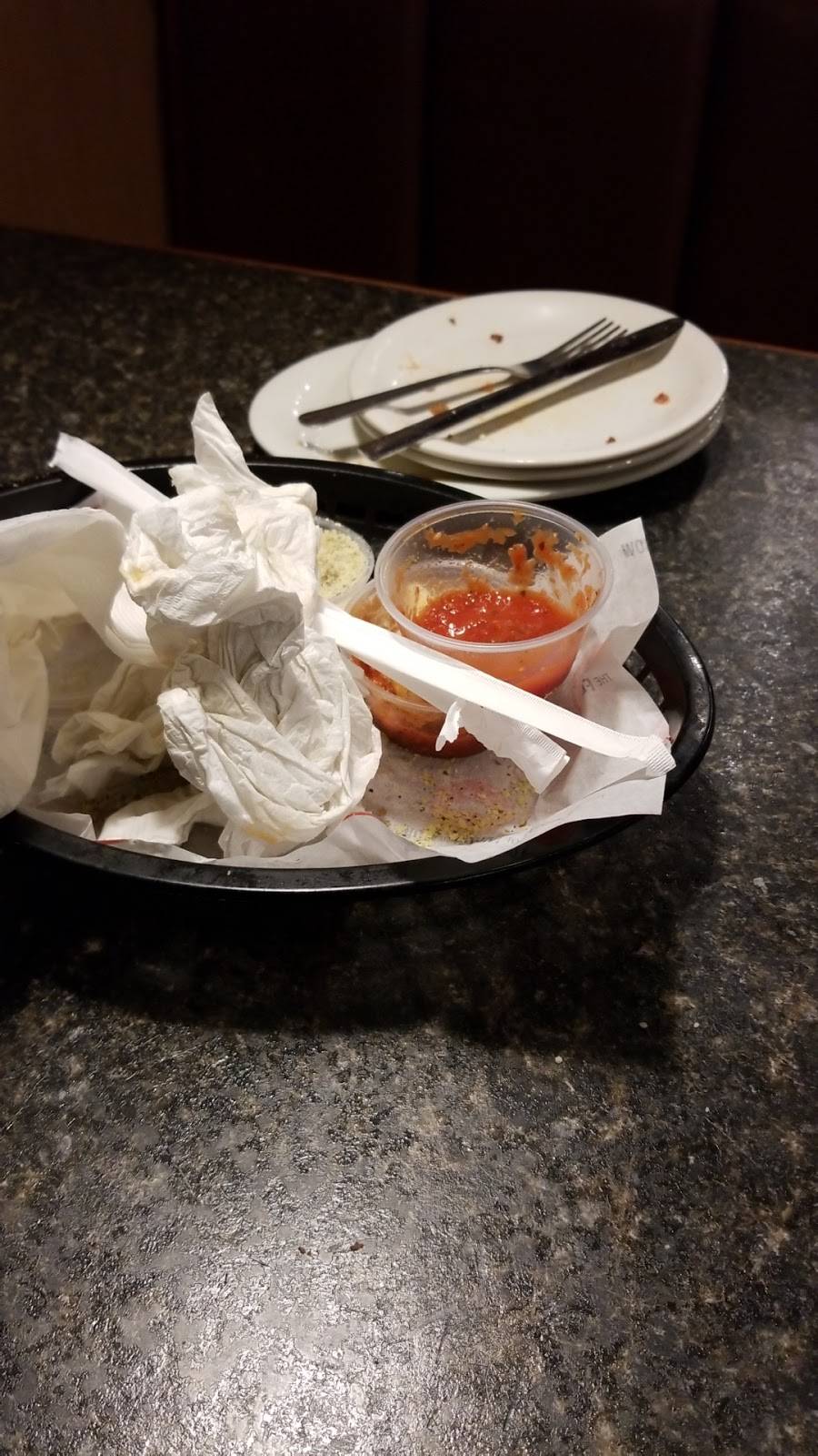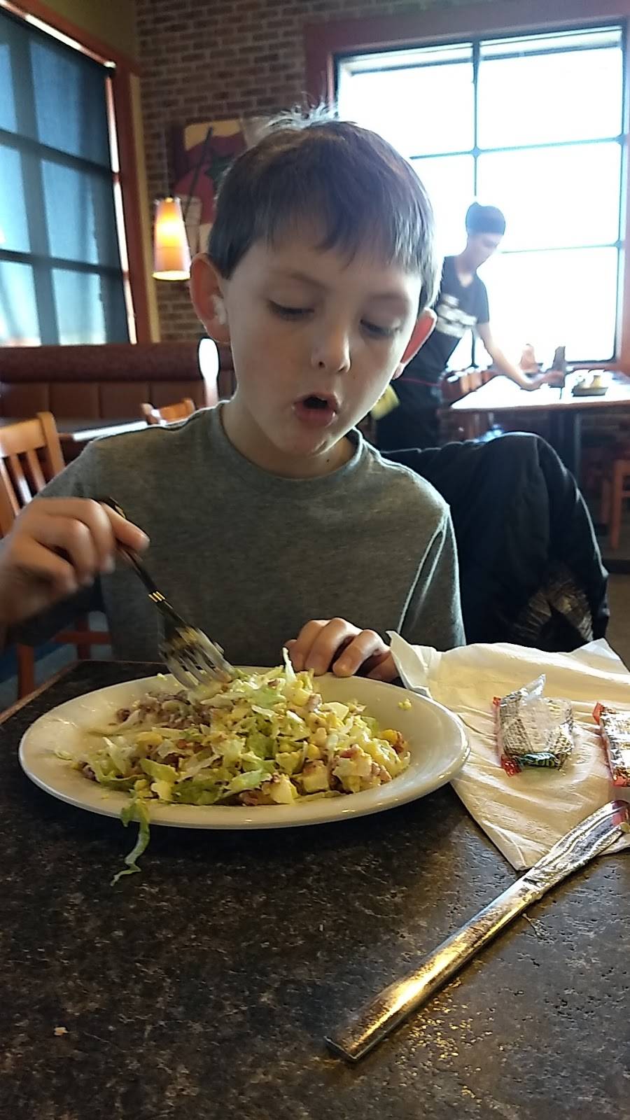 I am giving 3 stars because the waiter did a fine job with what he had which were some seriously dilapidated and out of date menus. We should have taken the hint and went elsewhere but we ordered what we used to get for pizza and wings, the wings were decent but the pizza was not. I love pizza but not that one. A cheap frozen pizza would have been better. I don't know if it is this store's management or corporate that is making them cut corners but it is not good.
