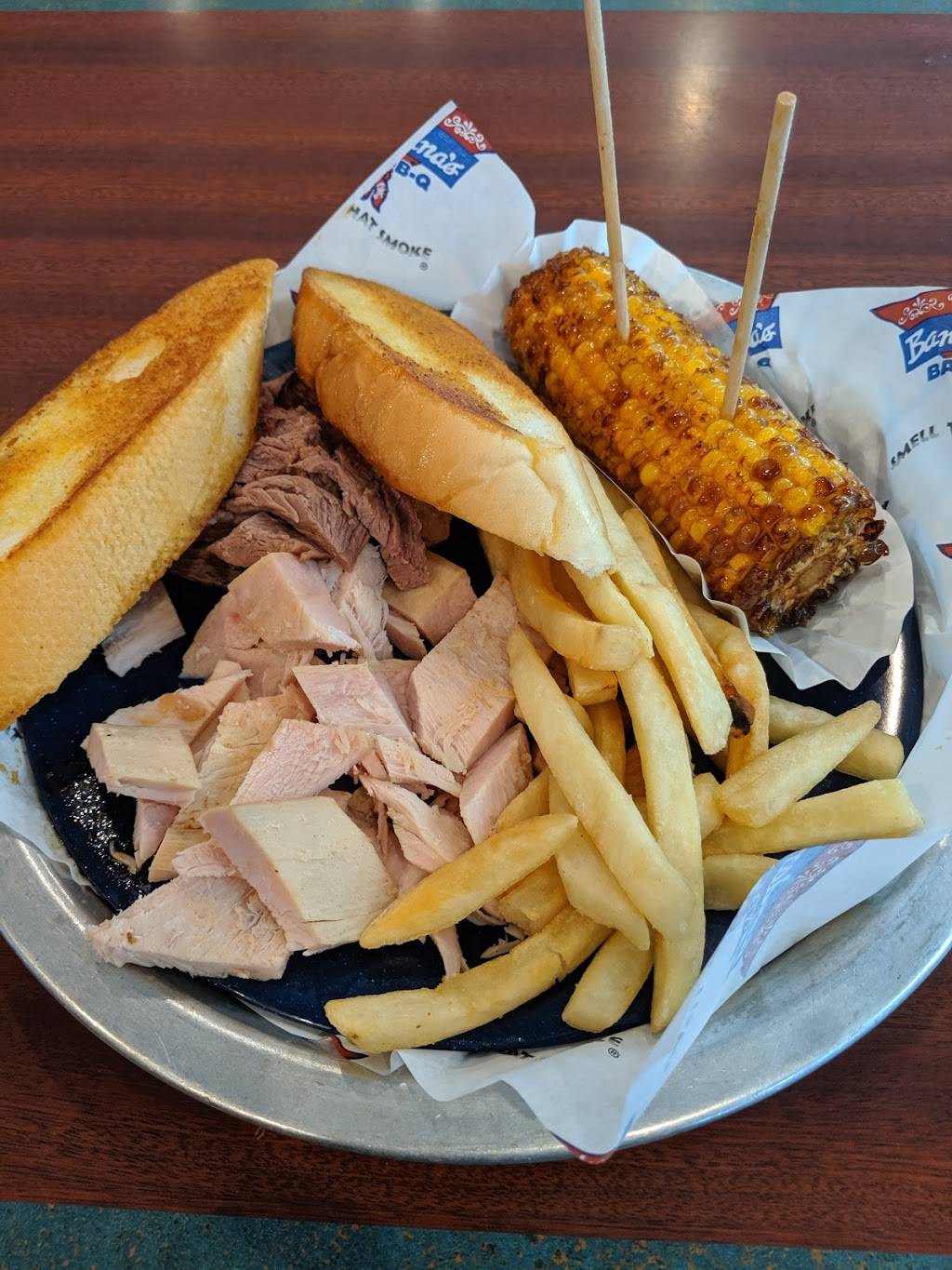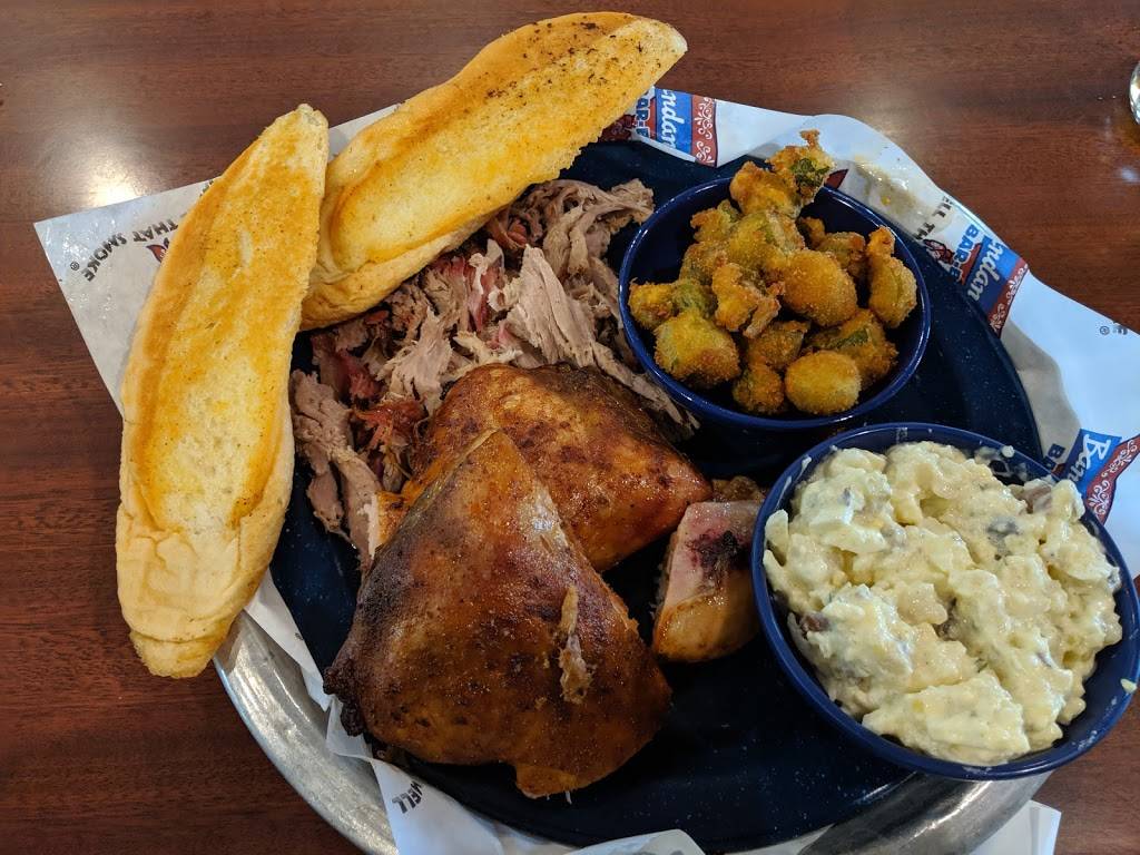 While Bandana's used to be an inexpensive place to grab a meal in the restaurant itself, to bring home or even to take on a picnic, it now pales in comparison to the newer smoke houses like Salt & Smoke or even SmokeeMoes. Unfortunately Bandana's meats are dry, only slightly smokey in flavor and the side dishes are unimpressive and unimaginative. I would much rather have a moist entree that is flavored by its own juices and smoke rather than adding bottled processed barbecue sauce. It will certainly do in a pinch or if you're in the immediate neighborhood or maybe travelling and jumping off the highway for a quick bite but in order to remain competitive, they're really going to need to revisit preparation and more interesting and imaginative side dishes and desserts. And for heavens sake, add Burnt Ends to the menu! :)