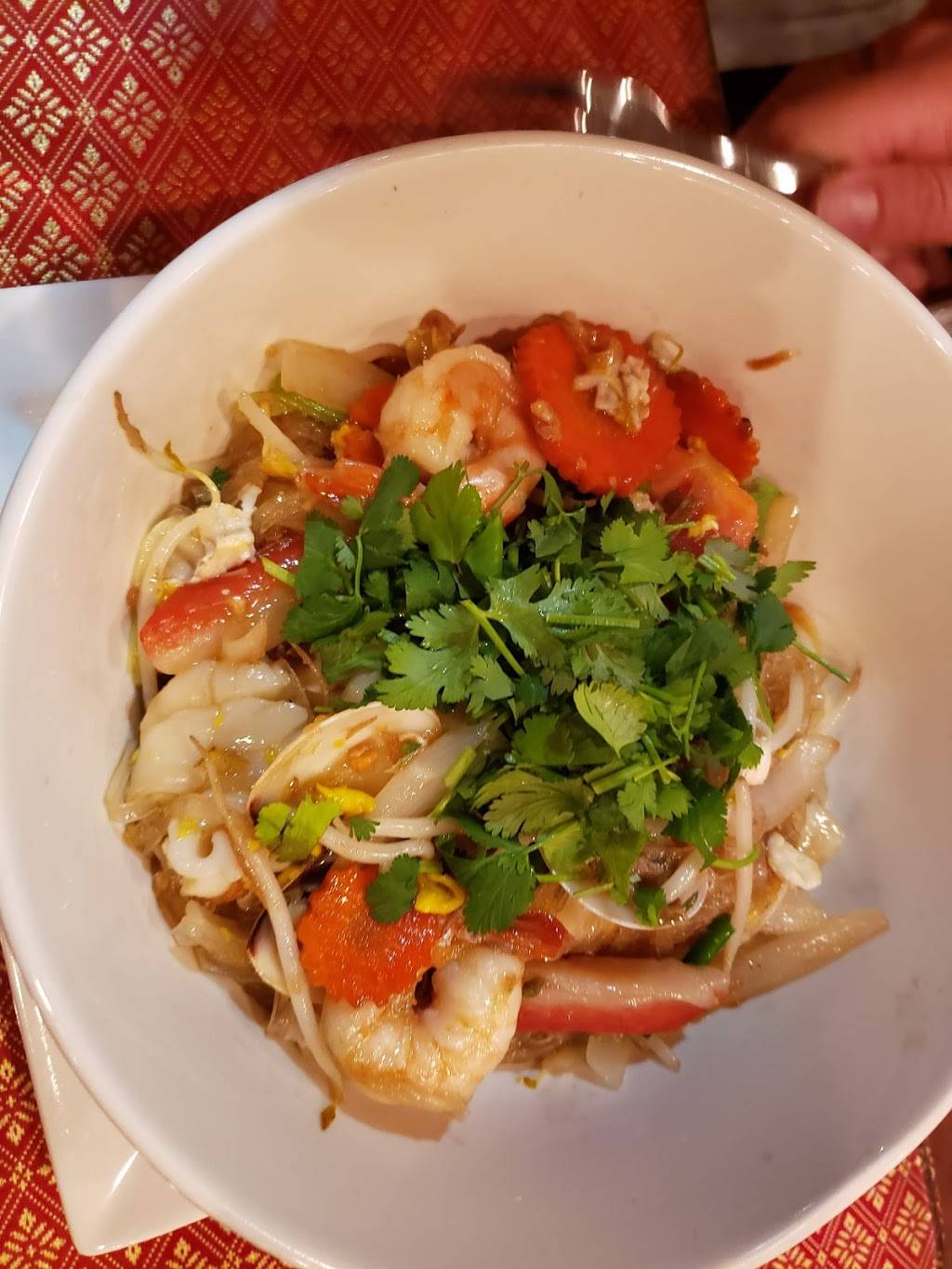Ordered the Tom yum seafood soup to go and was pleasantly surprised how hot it still was when I brought it back to the office. It had a decent amount of shrimp, imitation crab, clams, and chicken meatballs. I'm definitely a fan but i do know some dishes are hot or miss here, but would recommend the Tom yum seafood soup with noodles