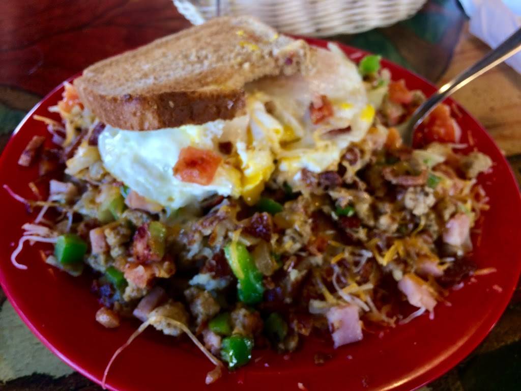 Large plates, Amazing food. We eat a little different and every server here has always been happy to customize the veggie skillet for us. And if you want to try something amazing. Try fries under any skillet! DELICIOUS!!!! OR an egg on the BLT. We showed up right at open on a Friday and 8 groups were waiting. That says it all! Well your full belly will too! Seems to be the same amazing staff since we started coming. If they are busy we call and get it To go. ENJOY.