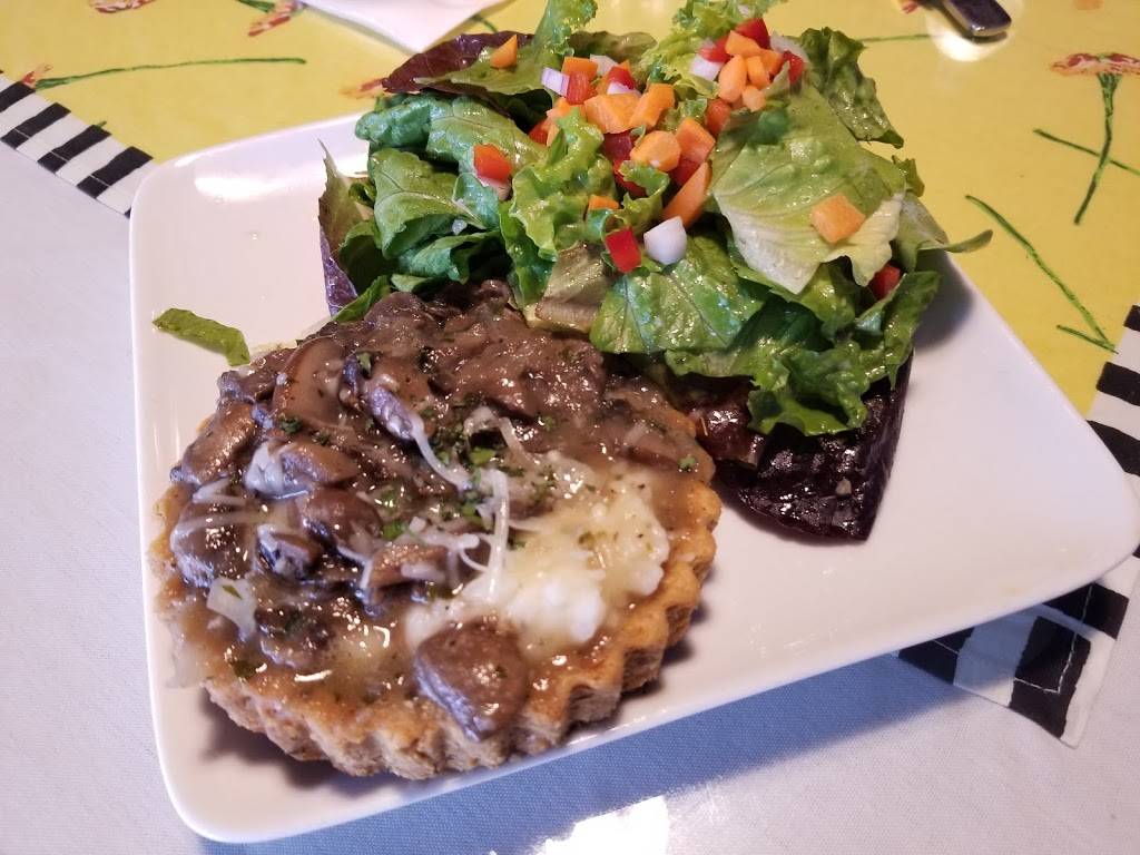 Cute, cozy and comfortable Euro style cafe with a robust menu. I had the mushroom tart and salad -- superb. The pastry cabinet, which I managed to pass up, looked incredible. Images of the cake haunt me still and now I live in regret.