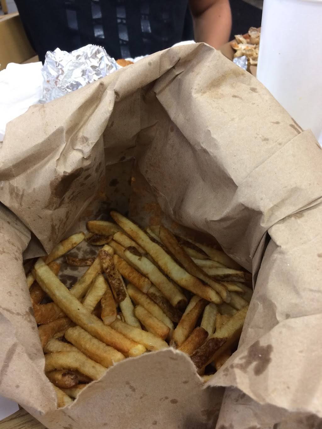 I ordered a Double Cheeseburger & Fries. It will definitely fill U up. It always amazes me how many cases of Potatoes they go through for French Fries on a daily basis... U cannot go wrong with a Five Guys burger????....