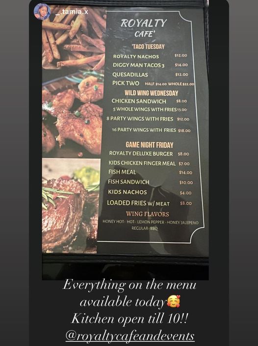 You can review this Business and help others by leaving a comment. If you want to share your thoughts about Royalty Cafe and Event Center, use the form below and your opinion, advice or comment will appear in this space.