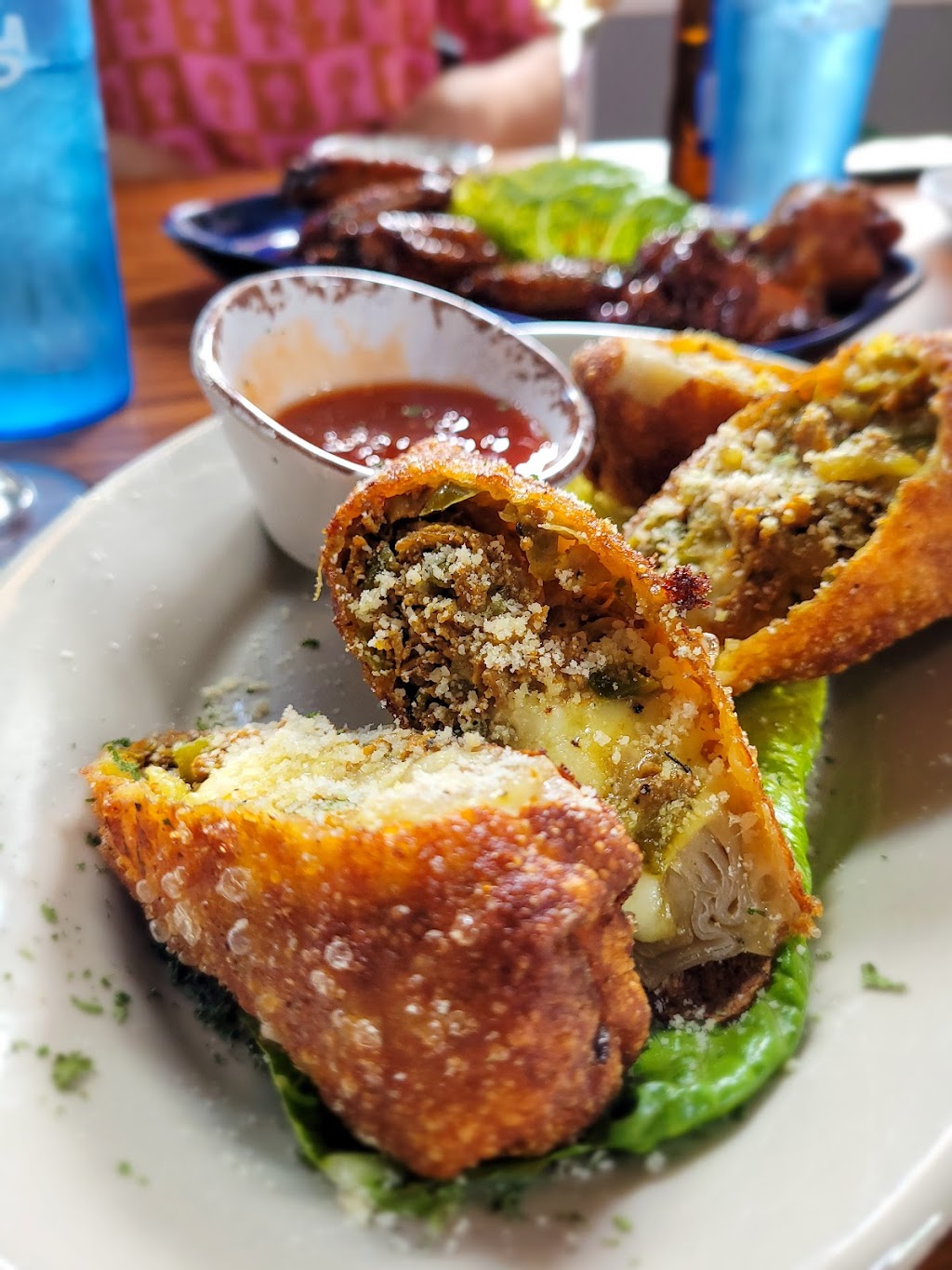 Been riding by seeing this place and couldn’t wait to try. Came with my mom and the food was absolutely amazing!!!! The wings were so good and juicy. The Buffalo chicken dip was some of the best I tasted and the chips were warm and toasty. The Philly cheese steak egg rolls were the best !!! My mom got the rum punch and she loved it. I got a Margarita and it was good and strong too. Customer service was excellent. Place was clean and nice. Prices were definitely reasonable especially for the quality of food you get. Happy Hour from 3-7 has good deals too. Would definitely recommend this place you have to try! Can’t wait to go back ❤️