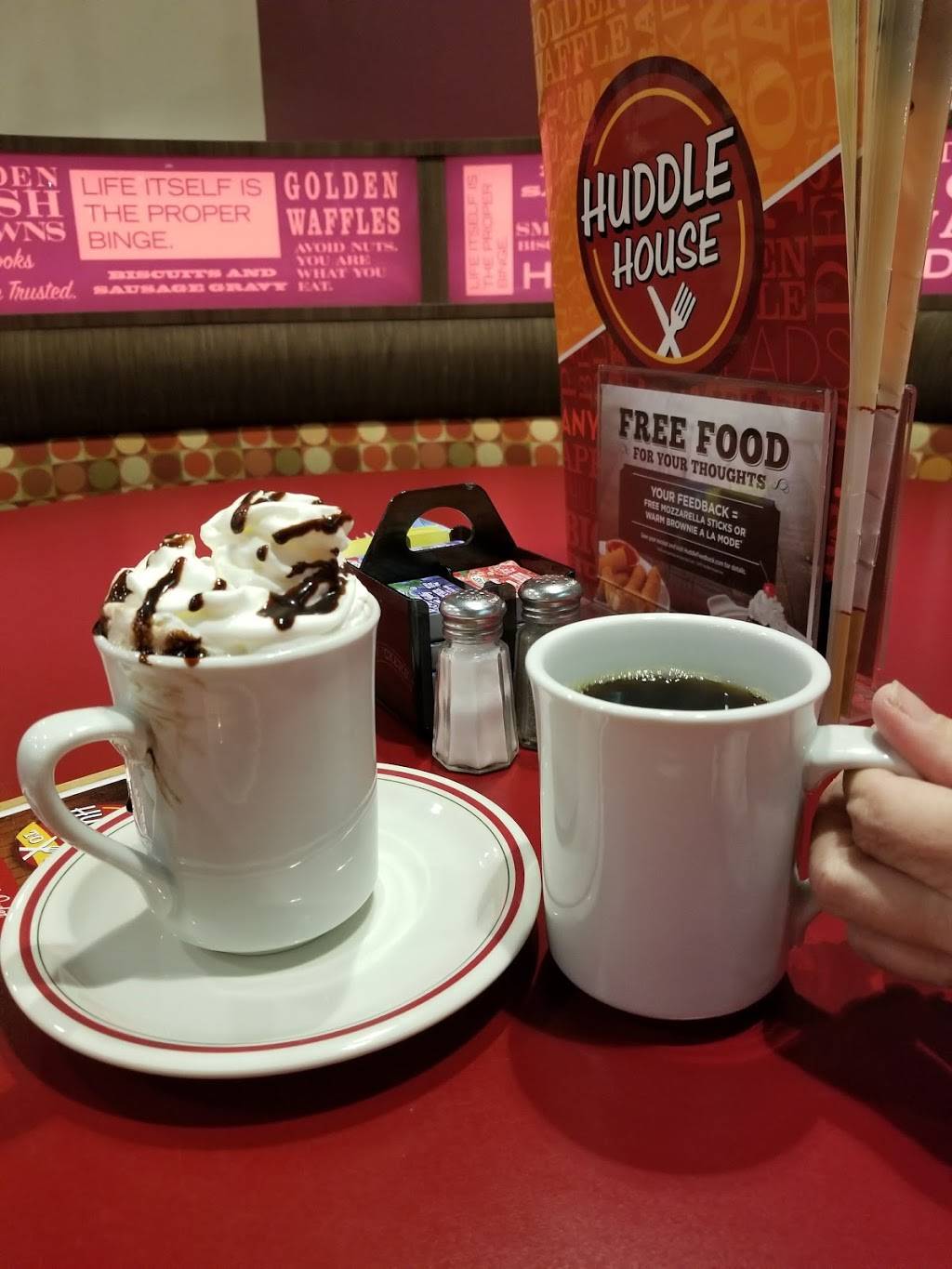 limited options in this small town. Huddle house service is hit or miss. Better than Bob Evans but not as wide a selection as IHOP
