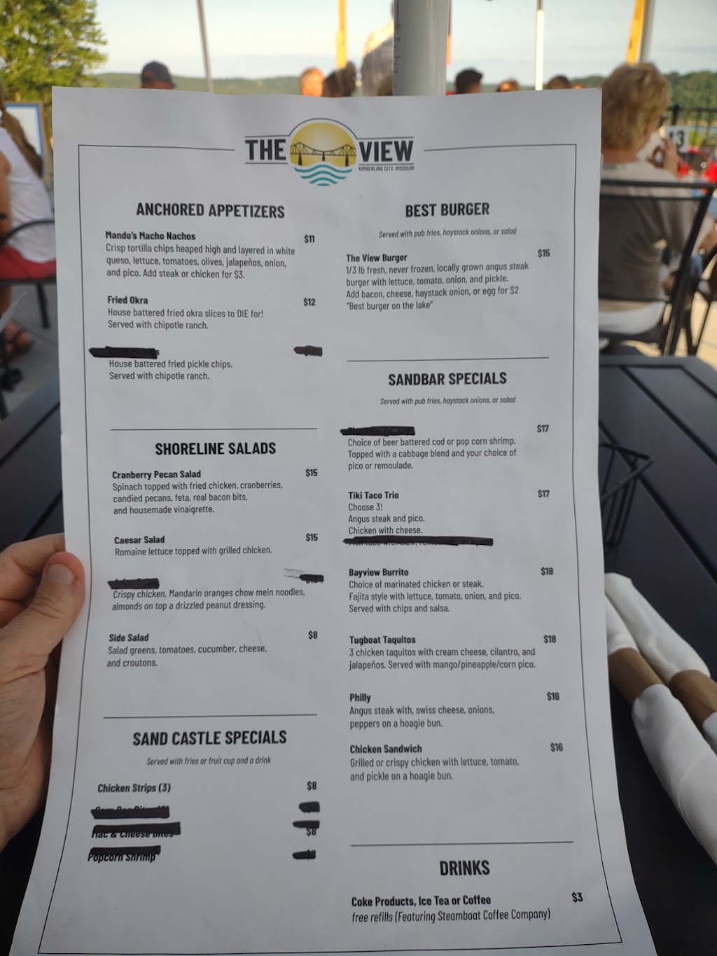 We have enjoyed dining at the View with friends several times. Last night we had the pleasure of attending a soft opening with the new Menu for Fall and Winter months. Our community is blessed to have another Restaurant with a desire to serve us year round. His new menu has delicious Appetizers and Entree's which we got to sample last night at his soft opening. If you have not yet gone, I think you should and experience music, food, drinks and a wonderful atmosphere. The owner John, has brought it all!