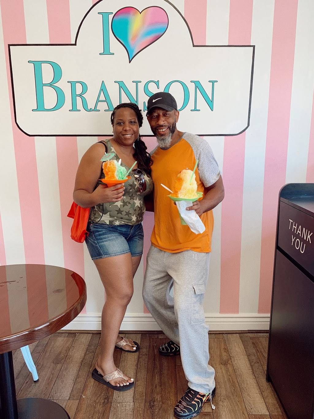Great giant shaved ice! Try strawberry and piña coloda mixed, you won't regret it! Boyfriend got Blackberry cobbler ice cream and loves it. So cute!