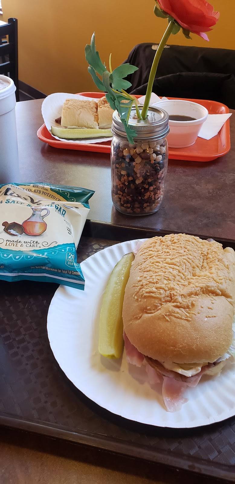 My son, me, had lunch Sat. He had pastrami Reuben sandwich, I had seafood sandwich. We got our orders promptly. Fresh bread, delicious meats, cheese. Fun to be on 2nd street too.