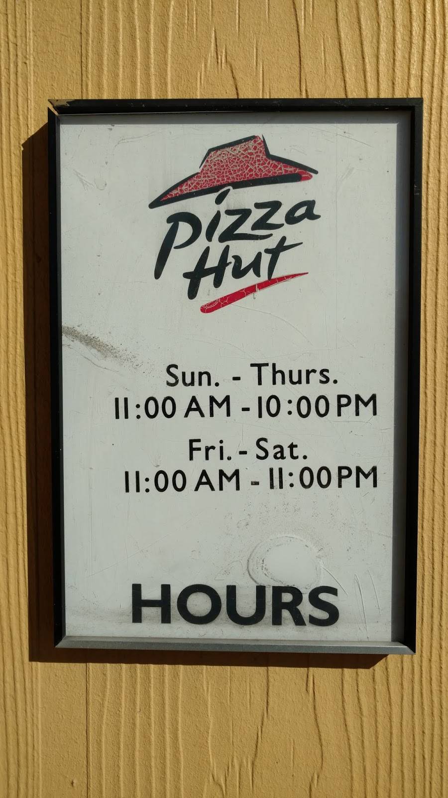 Good Pizza Hut style pizza. Dine in or carry out. Salad bar. Friendly service. Two types of to pizza ( chicken or beef) both are a great choice for taco pizza - can get taco carry out but requires assembly at home.