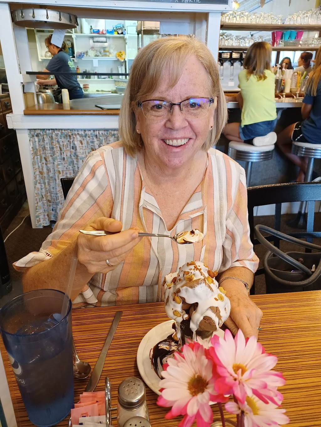 Go for the famous Tin Roof Sundae the first time. Then find excuses to go back -- over and over. The dessert selection is delicious, and their entrees are yummy. And the people are fantastic. I haven't been there for breakfast, but if they open at 5 a.m. they must be good. Only a mile north of I-80, this place is worth the trip from wherever you are. It is popular and small, so you will have to queue outside during the busy times.