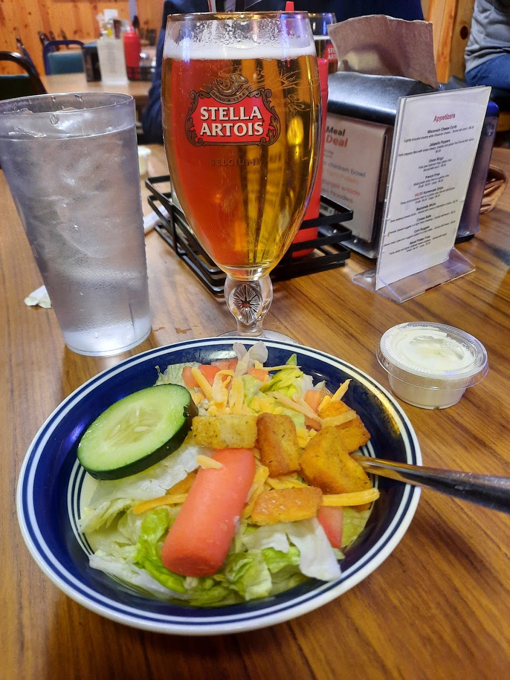 I had the chicken fried steak, and I would highly recommend it. It was delicious. The mashed potatoes were not bad, and neither were the corn bites. The selection of beer was small, but the ones I had from the local tap were good. I would come back again.