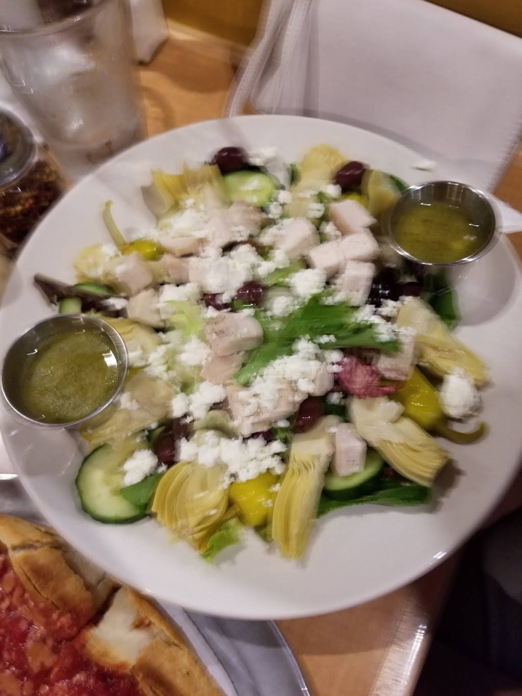 Walking in the restaurant was clean with a calm vibe to it. We were attended to and seated immediately. Server was attentive and kept our drinks full. We had the chicken wings, thin crust pepperoni, and Chicago style meat eater pie. WOW, food was amazing. Ingredients were fresh and flavor was outta this world! Definitely recommended, can't wait to go back!
