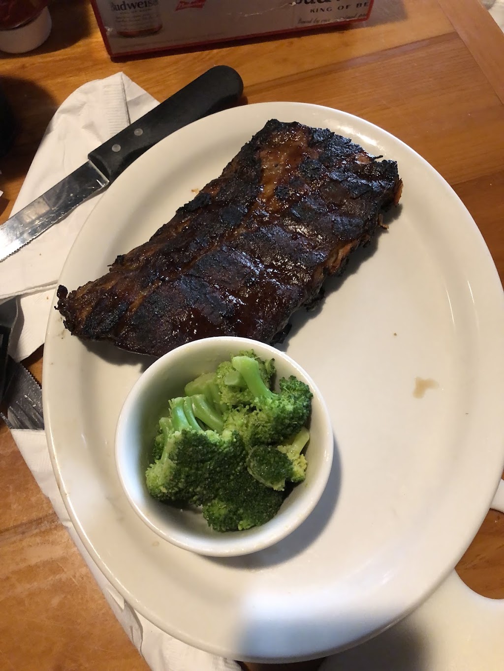 Well done "medium ribeye", dry powdery seasoning on blooming onion, cold hand cut fries, the kids 4oz steak the size of a McDonald's chicken nugget. The waiter was impressive for holding down a group of 17 with no reservation. The atmosphere had good vibes and the ribs were on point. My 3 star is generous