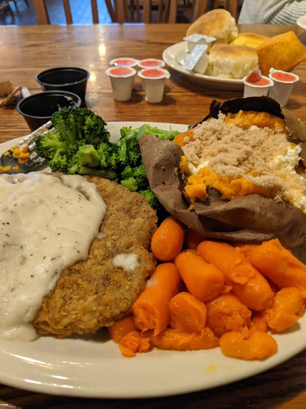 Great food!! They have such a great atmosphere. This is a great place to eat with a large group or kids. The staff is always friendly and service is quick. I love that you can order breakfast any time of the day. I love the Country Boy breakfast. ???????? Any place that serves grits is alright in my book. The country store portion always has neat products to look at and purchase.